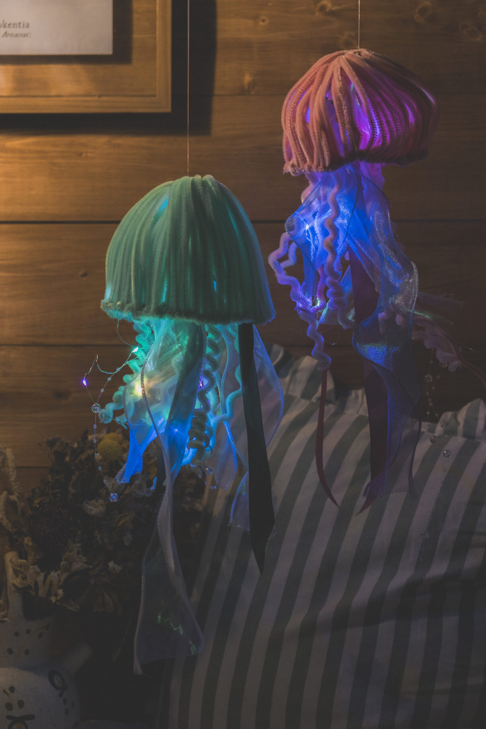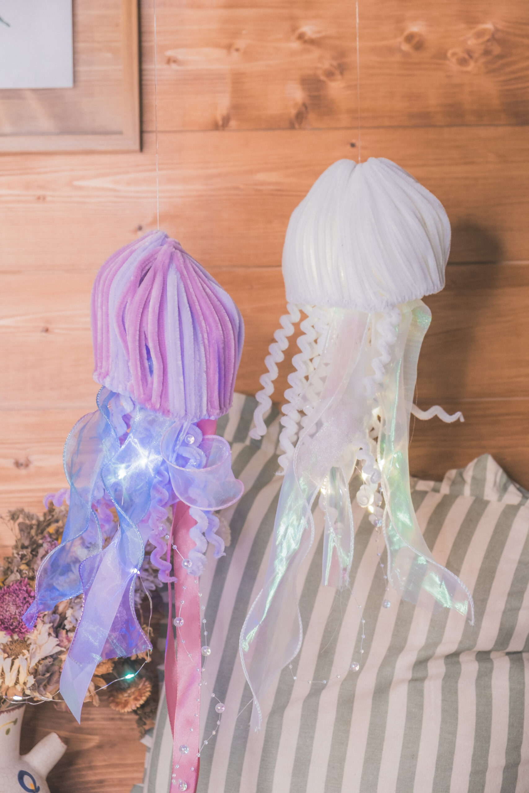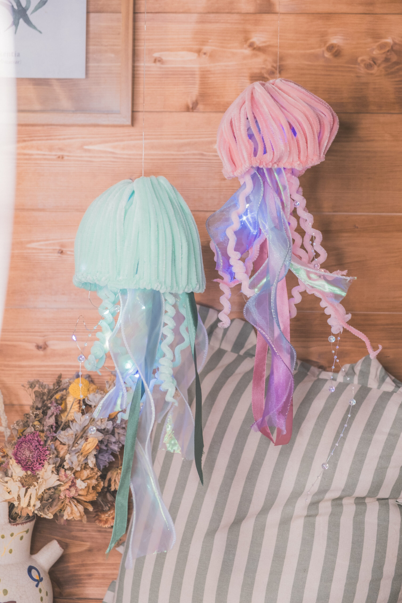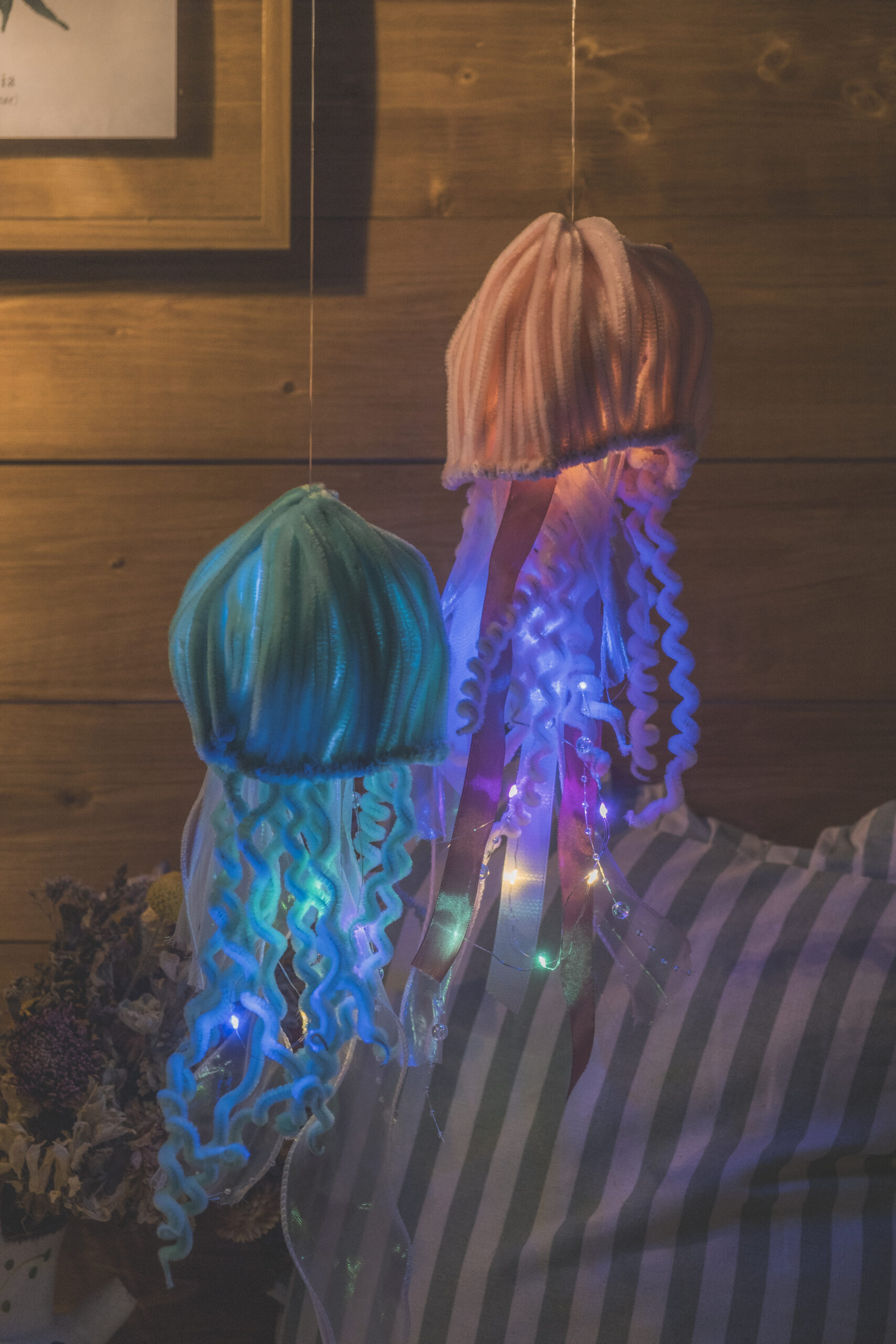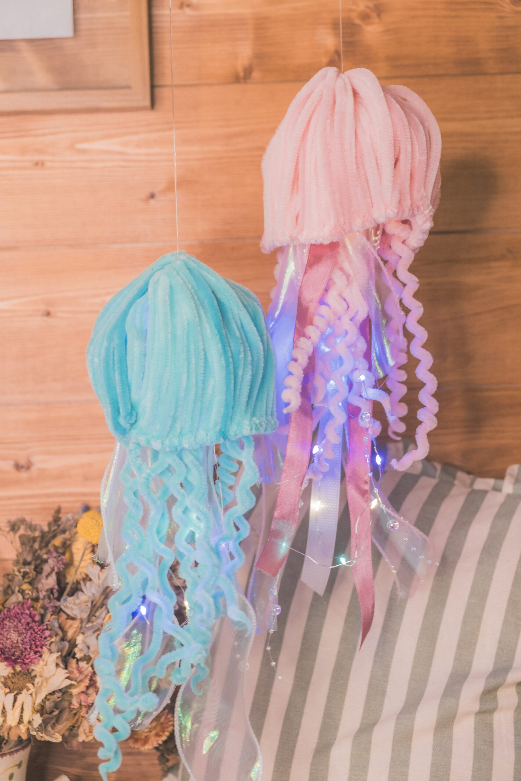 Méduse décorative lumineuse entièrement réalisée à la main en cure-pipe.